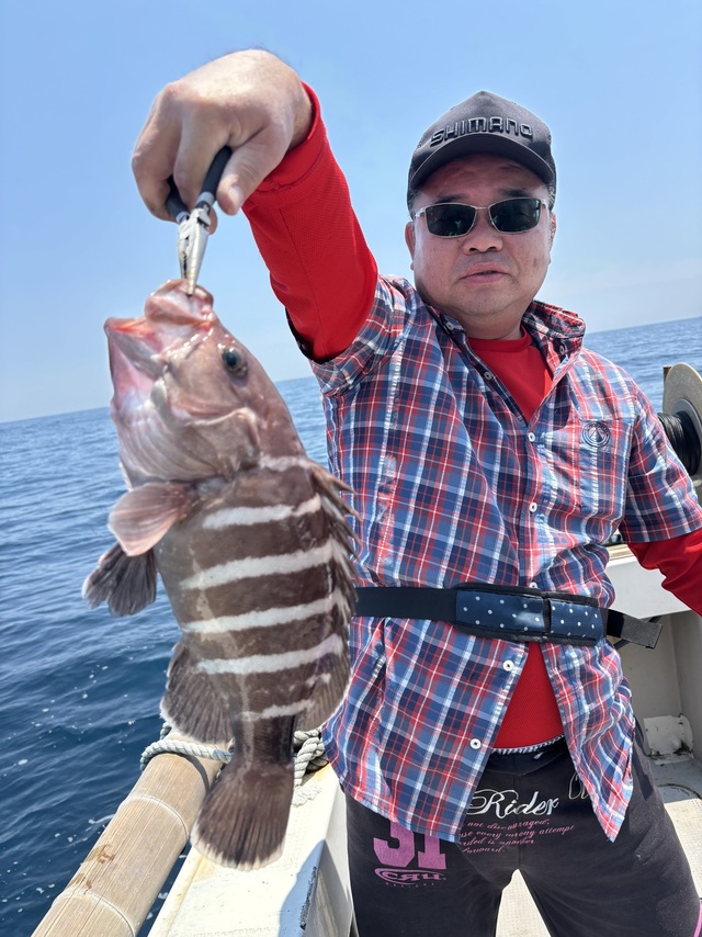 (アカアマダイ)35~55cm 0~3匹 マダイ 30~70cm 0~3匹 昨日のポイントへ出船しました。今日も潮はトロかったですが、タカバにアコウ、ボッコ、アオナ等が数上がりました。今日は5キロクラスの大鯛も上がり昨日同様高級五目釣り大成功となりました。6月7月の土日は凪なら沖ノ島ポイント出船しますので、よろしくお願いします。