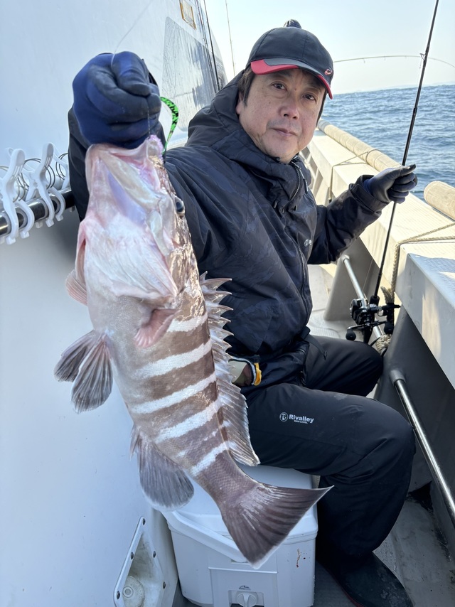 (カサゴ)アコウ イシダイ マダイ 本日根魚真鯛、ポツポツと釣れる人は良型アコウ、なんとイシダイも釣れましたが真鯛は小型でした。