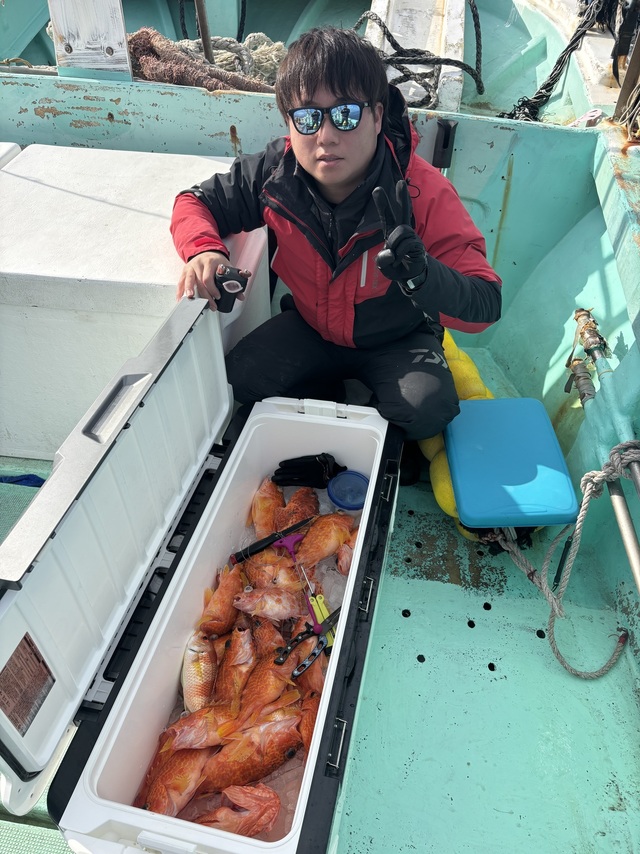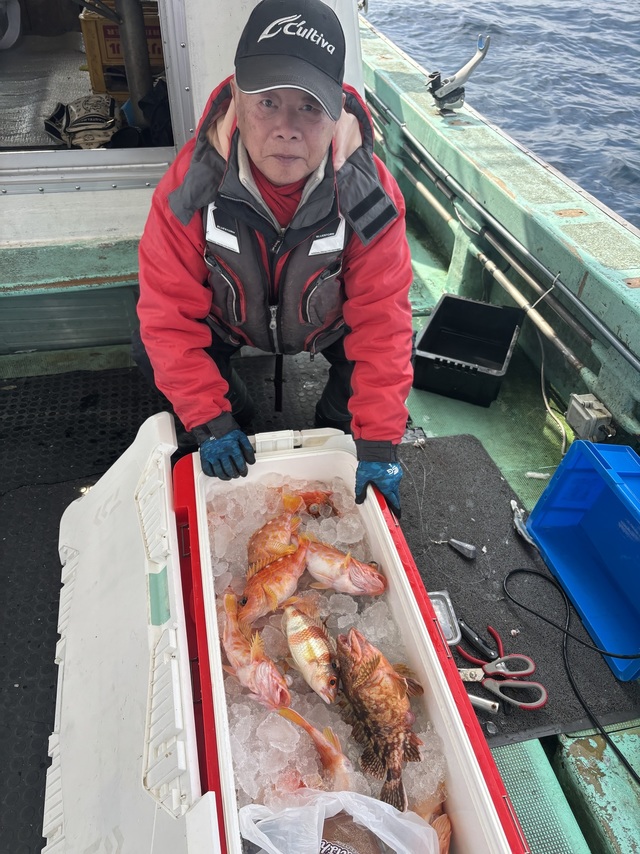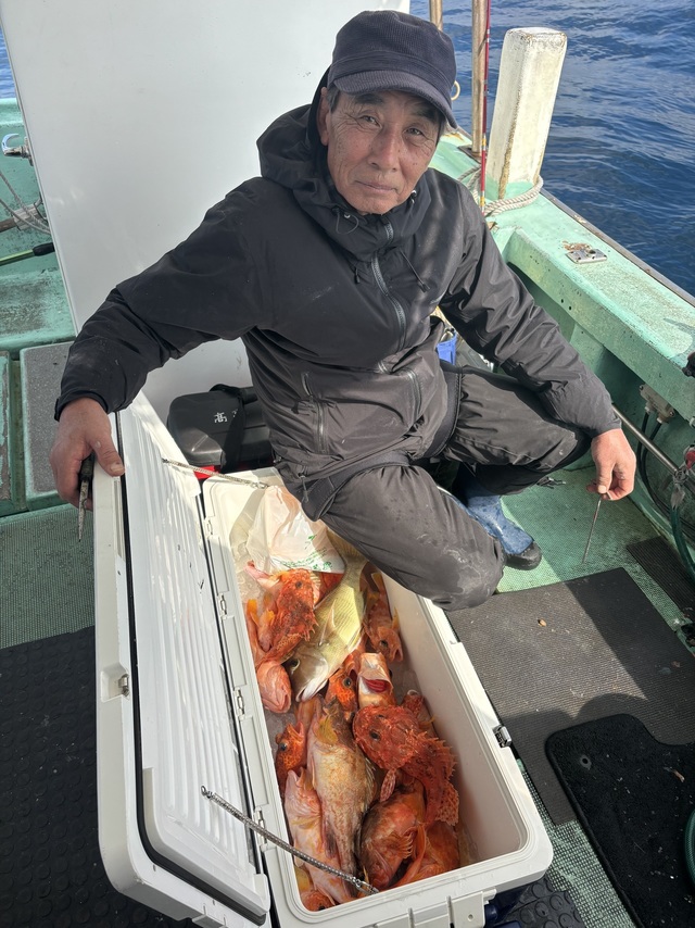 (カサゴ)25~45cm 合計25匹 アオナ 25~45cm 合計25匹 アマダイ 40~50cm 合計2匹 タカバ 25~35cm 合計15匹 レンコ 25~30cm 合計180匹 オニオコゼ 25~35cm 合計8匹 ヤズ 50cm 合計1匹 ネリゴ 40~45cm 合計2匹 今日はレンコがよく釣れたが根魚もボチボチ釣れていた。