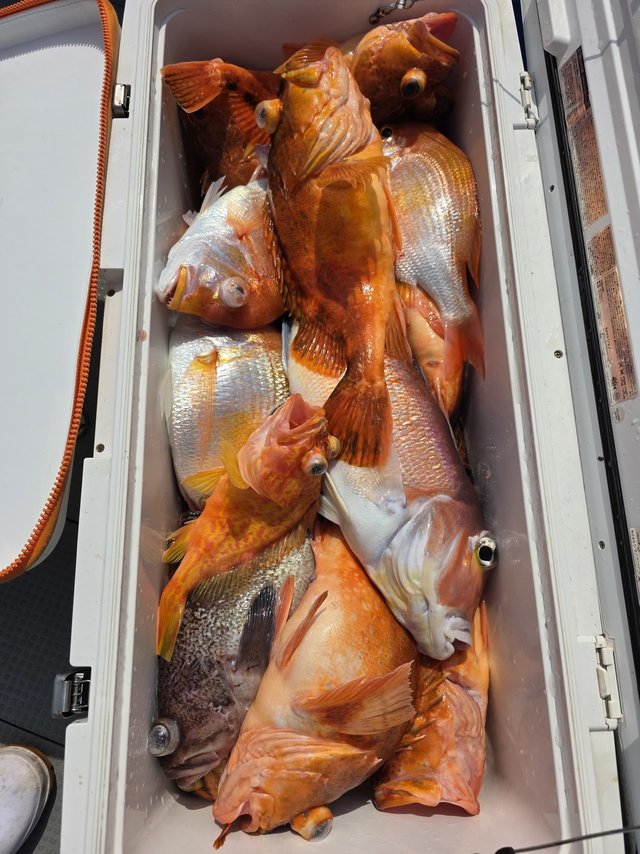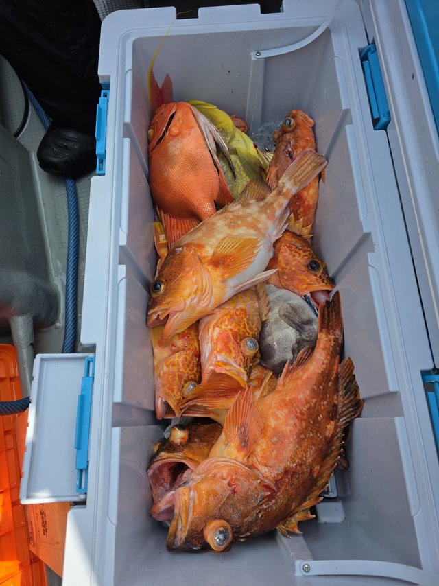 根魚釣りに出船 アラカブの活性良く数釣り! ゲストにアマダイ、ウスメバルなども釣れクーラー満タン! 根魚釣り、天秤五目釣りともに好調です!
