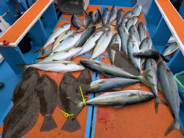 3.00kg 合計1匹 ヒラマサ 3.00~6.00kg 0~2匹 ヤズ 1.00~4.00kg 2~8匹 コシナガ 1.00~3.00kg 0~3匹 お疲れ様です! ぽつぽつと当たる日でした 餌も少しずつ付きづらくなって来ましたが 着いたらぼちぼち当たってくれました 本日はありがとうございました! またの乗船お待ちしてます!