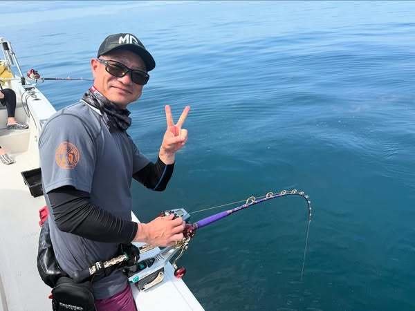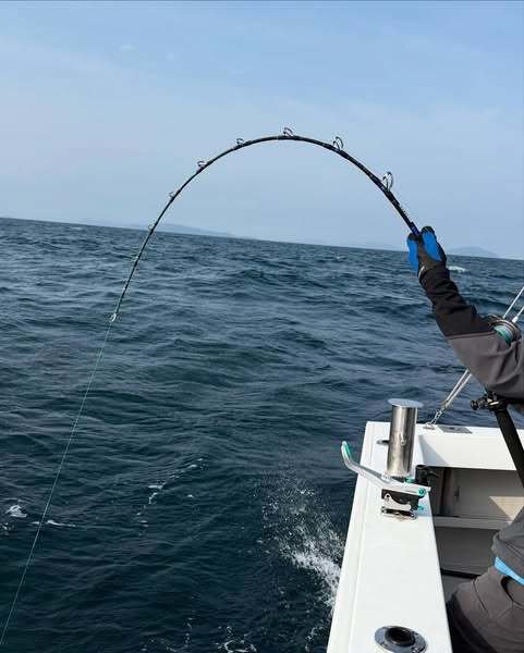 アラ アラ釣りで出船! 波風強く厳しい状況の中、、。 前半にキャッチ。 初アラゲットおめでとう御座います。