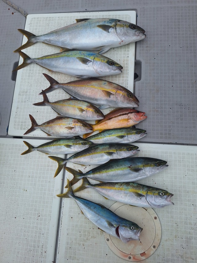 45cm 合計1匹 ヒラマサ 50~90cm 0~1匹 ワラサ 50~70cm 1~2匹 ヤズ 40~45cm 2~5匹 前半ぼちぼちしか釣れなかったんですが最後はヤズラッシュでした! お疲れ様でした! またのご乗船お待ちしております。