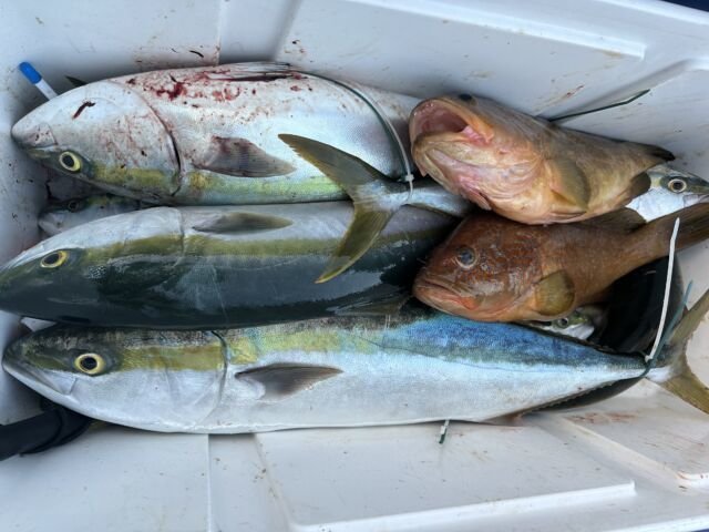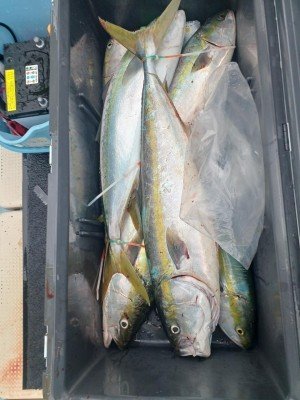 2.00~4.00kg マダイ 3.00~4.00kg ヤズ 2.00~4.00kg ヒラマサ 4.00~6.00kg カンパチ 2.00~3.00kg カツオ 2.00~3.00kg ハマイサキ 落とし込み釣り。皆さん楽しく良く釣れました。