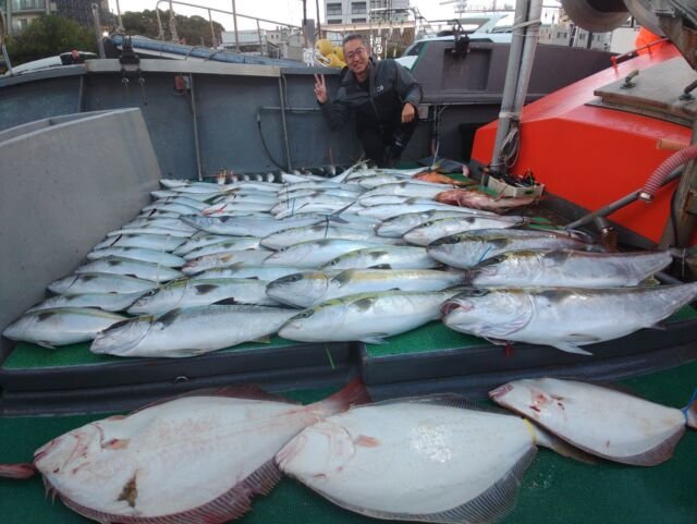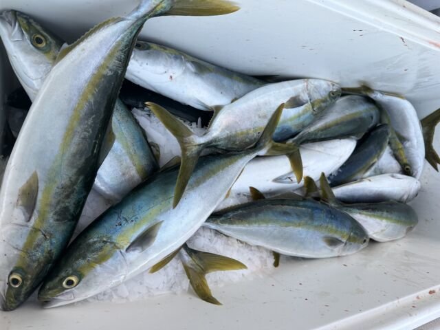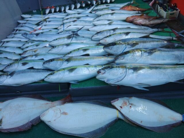 ヒラマサ アカヤガラ カンパチ カツオ ハガツオ ヤリイカ 竿頭40匹 落とし込みは順調です。 エサ付きも良く、大型ヒラマサも多く当たってきます。 イカ釣りは終盤戦突入。 沖合いの為少しの風で中止です。 4日が最終になると思います。