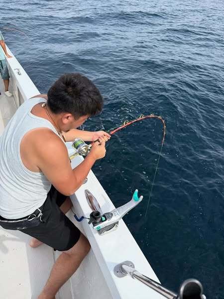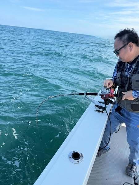 アラ釣りで出船! 前日の時化の影響でウネリが残り厳しい状況の中、前半にゲット。 おめでとう御座います♪ 流石ですね〜。