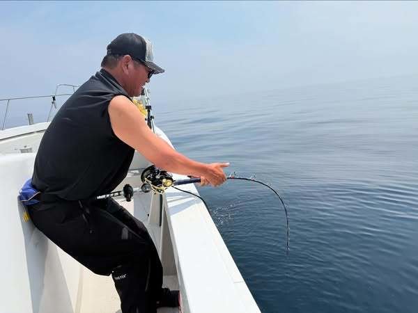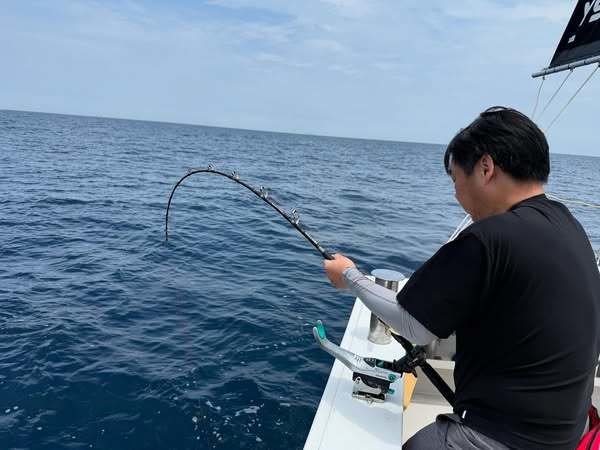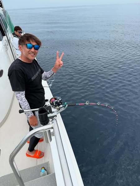 アラ釣りで出船! 開始早々に連続ヒット。 おめでとう御座います。 モンスターフックアウト有り。
