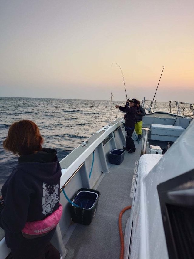 船長の岡本です。 6/1イカメタル&オモリグ。 棚はバラバラ。 やっと抱いても次は居なぁ〜い。 どうしたもんかと。 でもどうかしたらテライカ。 胴寸50㌢くらいのが抱いてくる。 今年のイカはツンデレみたい。 max20杯弱。 皆さんお疲れ様です。