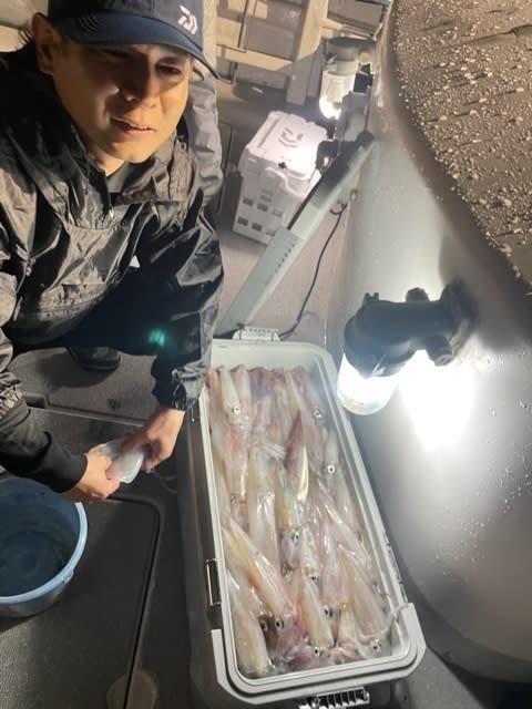 夜イカ釣り。今日も良く釣れました。三桁オーバーの方多かったようでした!