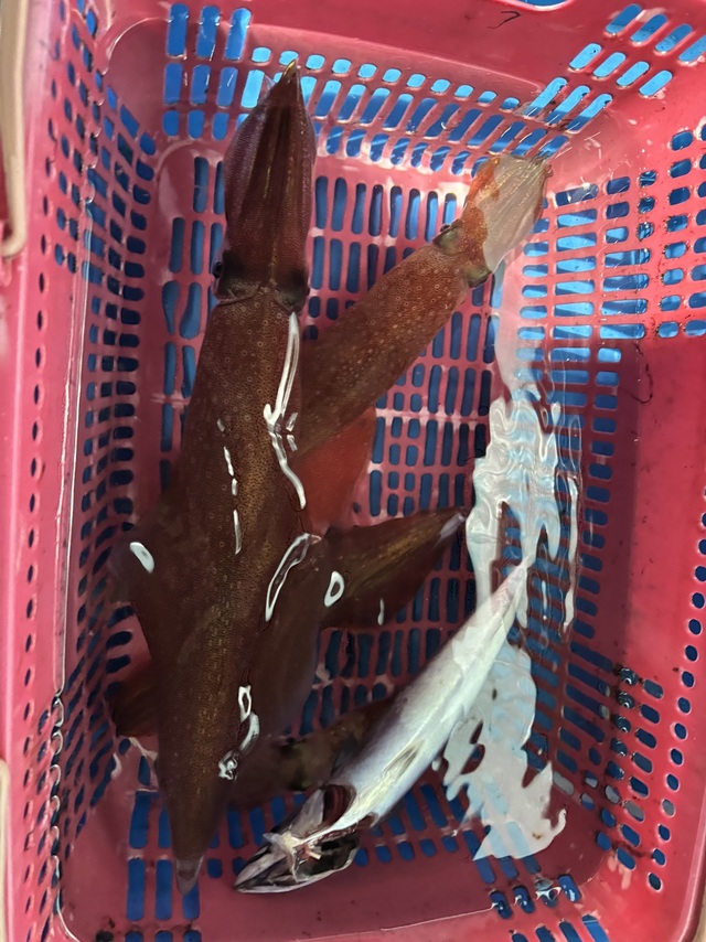 15~25cm 0~5匹 ヤリイカ 15~40cm 10~50匹 お疲れ様です! 前半はなかなか釣れず厳しい展開でした、 後半になってようやくぱらぱらと釣れ出しましたが 厳しい釣果となりました。 本日はありがとうございました! またの乗船お待ちしてます!