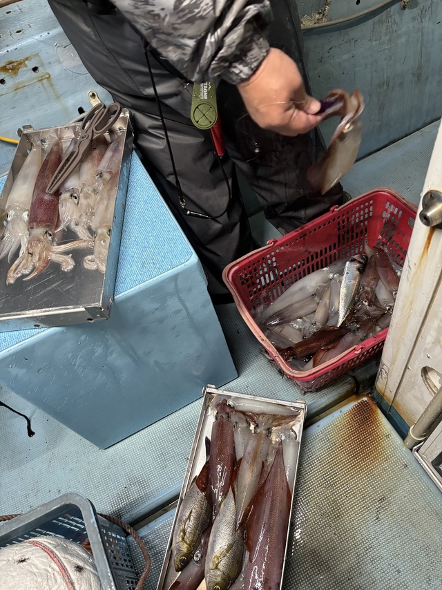 (カミナリイカ)30cm 合計1匹 ヤリイカ 15~30cm 30~60匹 スルメイカ 15~25cm 0~5匹 お疲れ様です! 型は小さいですが数はぼちぼち釣れました たまに良型あがりいい感じでした! 本日はありがとうございました! またの乗船お待ちしてます!
