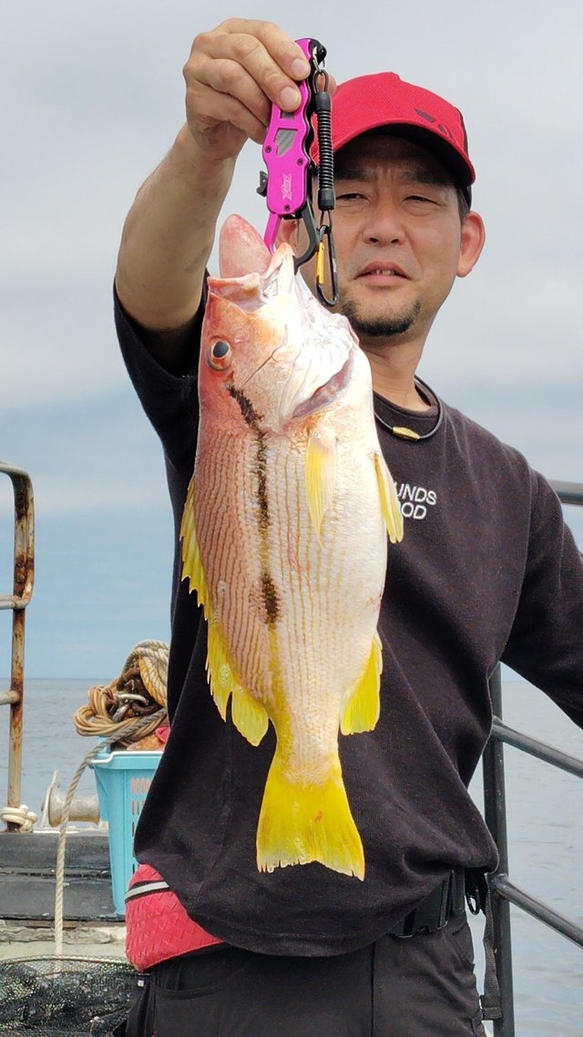 タイ イカ アジ 船長の岡本です。 ちょいラバからのイカメタル。 しかし昼間は暑〜い。 だって夏だから。 タイラバもイカメタルもいい感じに。 max80杯弱。 デカアジもいい感じに釣れとりますよ。 皆さんお疲れ様です。