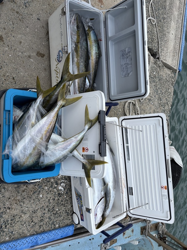 1.00~5.00kg 0~3匹 ヒラマサ 2.00~7.00kg 0~4匹 ヤズ 1.00~5.00kg 0~10匹 ヤガラ 2.00kg 合計1匹 ネリゴ 1.00~2.00kg 0~1匹 サワラ 3.00kg 合計1匹 お疲れ様です! 朝一はなかなか厳しかったですが 途中からはぼちぼち釣れました ほぼ全員クーラー満タンで終了 いい釣果となりました 本日はありがとうございました! またの乗船お待ちしてます!