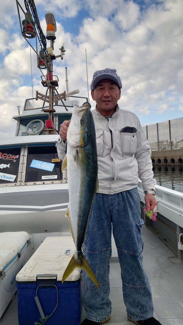 (ブリ)3.90~4.80kg 1~1匹 落とし込みで出船 ベイトを探して移動の繰り返し 寒い中大変お疲れ様でした 本日もご乗船有り難う御座いましす 予約状況はホームページに記載してますので宜しくお願い致します