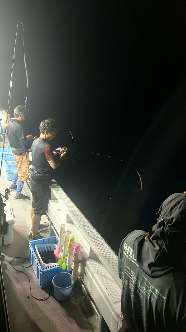 爆釣御礼! イカメタルで出船 アタリ連発、まさに**「入れ食い」**状態でした 釣果は皆さんクーラー満タン!お祭り騒ぎでしたね トップで143杯、3桁5名でした 爆釣警報発令中 ご乗船有り難う御座いました
