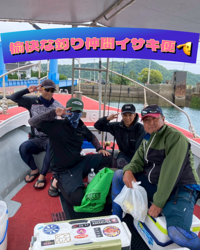 ウマズラ イラ マダイ イサキ五目釣り便。5月後半小潮回り! この日は大雨予報。集合場所に着くと小雨!お客様に雨が酷くなるかも知れないので『中止にされますか?』とお訪ねすると、頑張って行きますとの事でしたので出船。 常連様も初心者様もドシャブリの中で苦戦。イラちらかして苦戦。 なんとか初めての方も釣れたので良かった。 あと雨天時はヤッケではなくレインウェアをご準備お願い致します。 この期に初めての方もチャレンジしてみて下さい。美味しさと楽しさが溢れるイサキ五目釣りを『どうぞ〜』