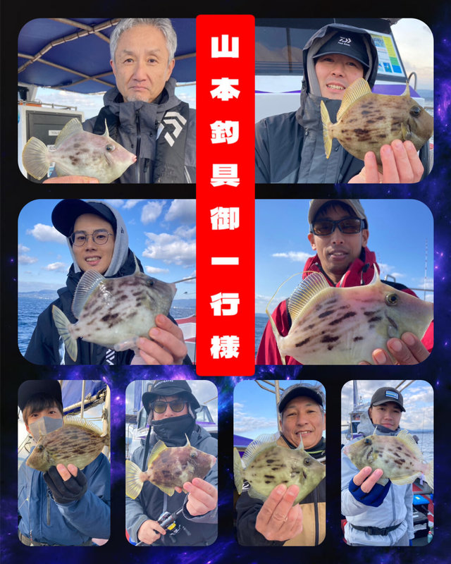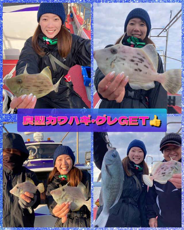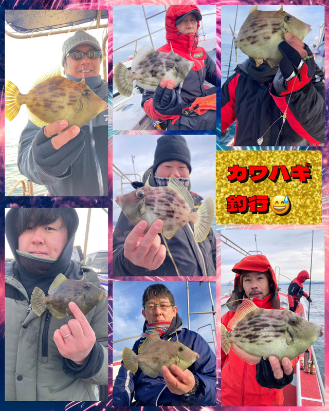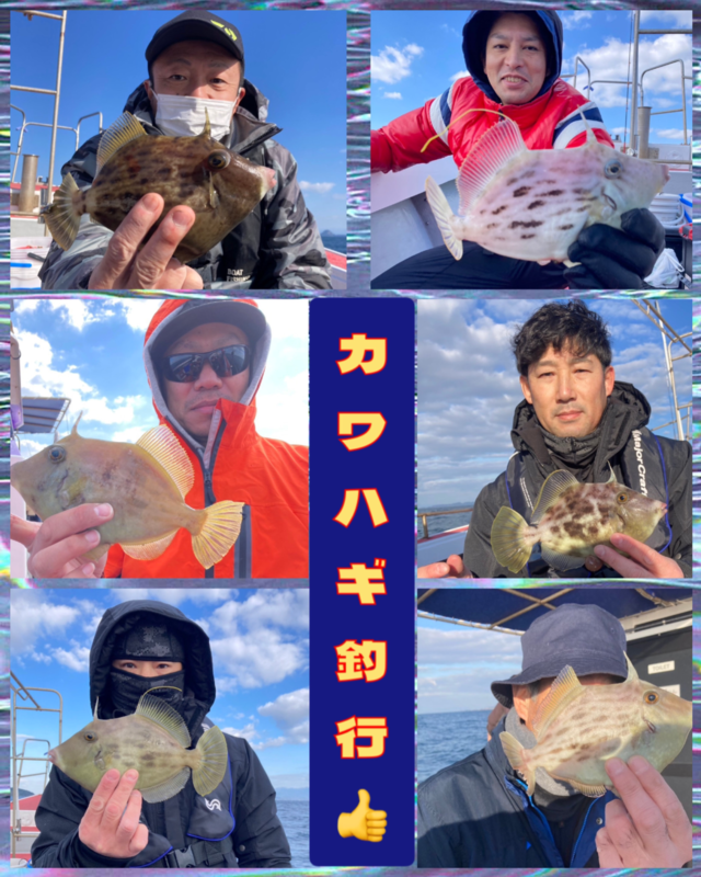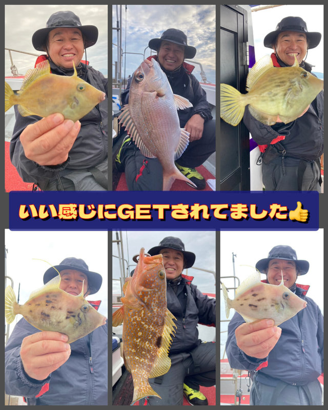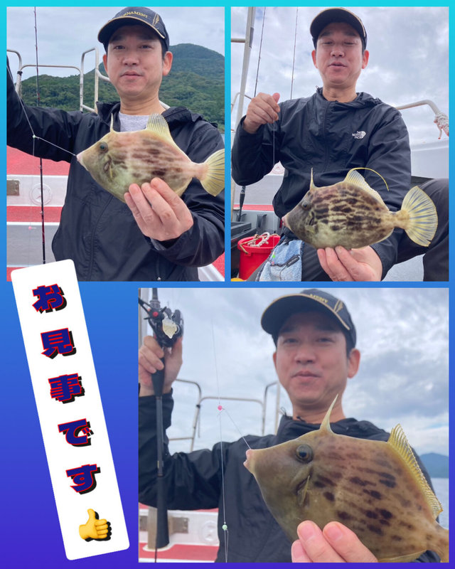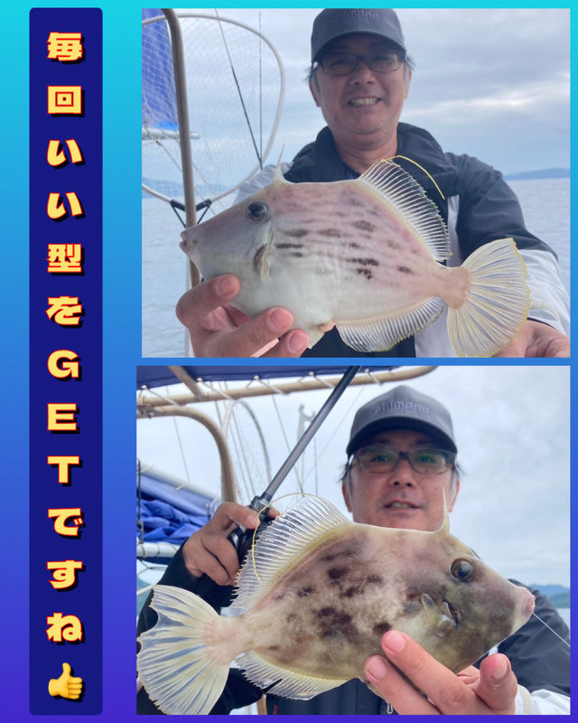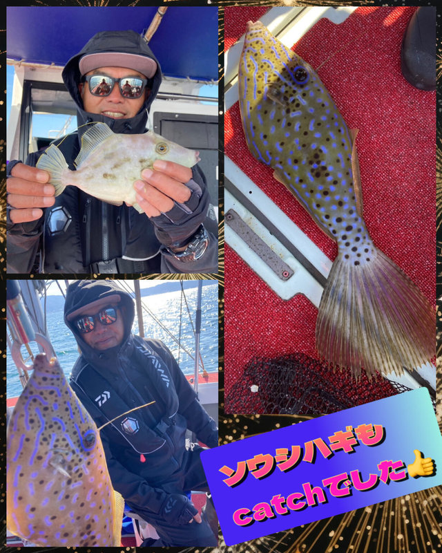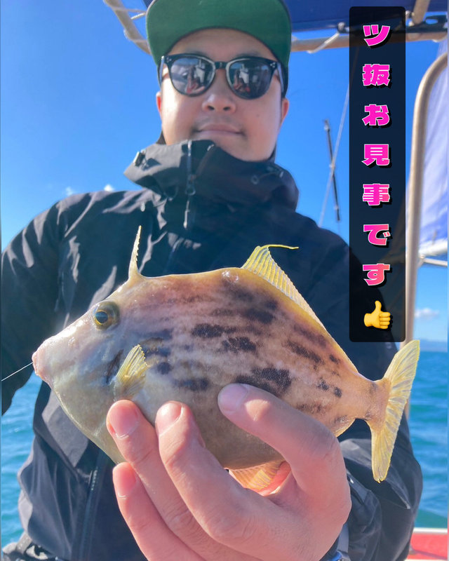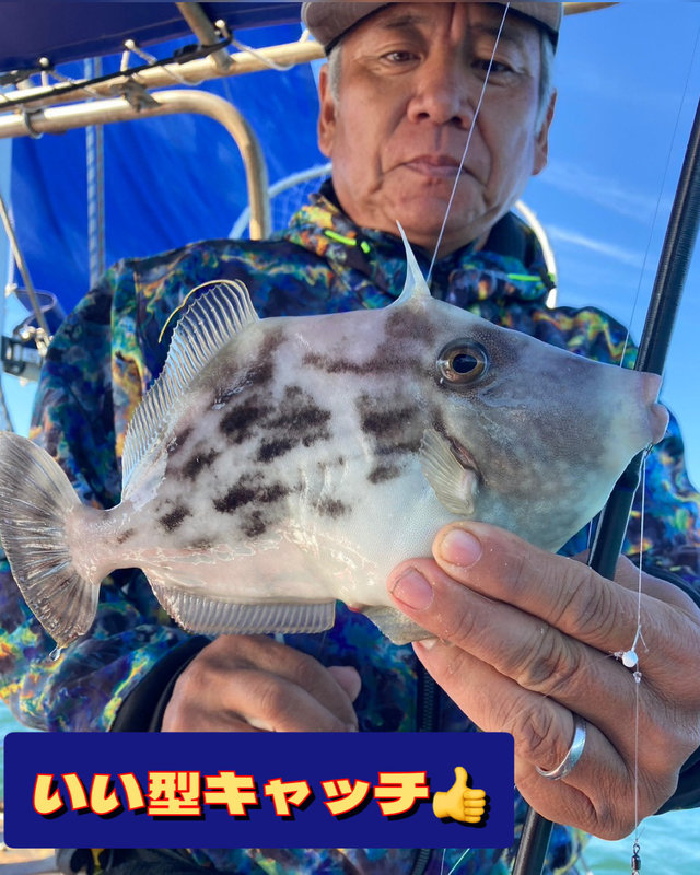 青物&カワハギ少し便。昨日はお客様の熱い要望によりライト落とし込み&カワハギ釣行〜!なかなか成り立たないプランでしたが皆さま頑張られました。朝イチいきなりのサワラNICE〜。ヤズがポツポツ!ライトジギングから始まり時合終わるの早かった〜。からの潮止まり前後でカワハギ。皆さん餌が全部無くなって上がってくる。苦笑首をかしげる姿が多発。居ますハギちゃん。それから嬉しいゲスト50アップのキジハタ。NICE〜。皆さん釣れてから潮が流れ出したので再び落とし込み。海域に着くと海上保安庁がパトロールしてて、後に他の漁船を連行。走らせられない違反があったのでしょう。ベイト見つけるとイワシが着いて竿5本が一気にズギュン。タモ入れ間に合わない。ワラサ1本にヤズを5・6本追加して帰港いたしました。