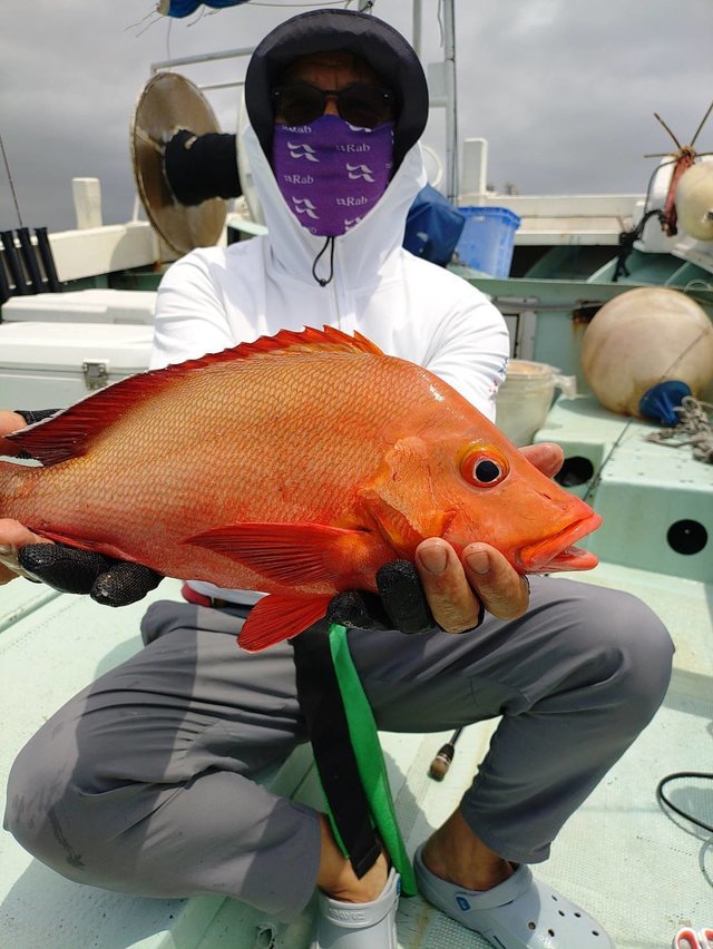 (スジアラ)初釣りでした。 エサのグルクンは30分で確保でき、アカジンポイントへ 甘噛みが多く渋かったけど、来てくれました!3キロ。