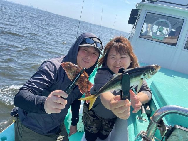 (シログチ)アジ 15~26cm 25~84匹 カサゴ アジ船に出ました。 開始からポツリポツリと1日我慢が出来る当たりでした(◔‿◔)