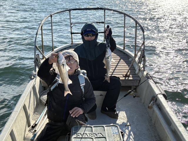 (スズキ)30~52cm 合計4匹 カサゴ 23~24cm 合計2匹 PMチャーター2号艇石井ちゃん 午後は常連さんが初ゲストを連れて遊びに来てくれました。 今回はターゲットロッドの納品も兼ねての釣行です。 まずはタンカー際からスタート。 ベイトの反応はあるものの、なかなか口を使わず数か所回るも苦戦。 潮位が下がっていたため、途中から穴撃ちにシフトしました。 この判断が功を奏し、早い段階で魚をキャッチ。 ニューロッドにも無事入魂できてひと安心です。 バイト自体は多くありましたが、キャッチまで持ち込めない場面も目立ちました。 明るい時間帯にはカサゴにもチャレンジ。 皆さん初挑戦ということもあり、アタリの取り方に苦戦し、日中は釣果に恵まれず。 暗くなってからサイドで再チャレンジし、見事ロックフィッシュをキャッチできました。 ロックフィッシュは簡易的な狙いでしたが、しっかり魚の顔を見ることができて良かったです。 これから夜のシーズンは、ロックフィッシュやアジがさらに面白くなってきますので、ぜひ準備を整えて挑んでみてください。 なお、今回釣れたカサゴはすべてリリース。 釣り場を守り、長く楽しむためにも、特に子持ち個体についてはリリースのご協力をお願いいたします。 本日はありがとうございました。