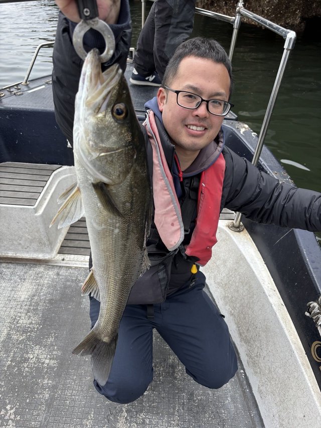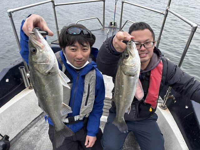 (スズキ)55~76cm 合計3匹 コノシロ 25~26cm 合計2匹 午後乗合2号艇石井ちゃん。 本日はお二人さまで出船! この時期になると毎年来て頂いてるTOP狂いコンビw さてさて今年はどうなるか、まずは近場からスタート。 鳥がチラホラして雰囲気良くて、開始早々TOPにまさかの誤爆! これはチャンス!って事で、お一人がミノーにチェンジしたら秒殺HIT。 そのまま続けてもう1本、ありがとうございますw 一段落したので沖へ移動。 沖でも鳥がパラパラしてて、チェックしたらまさかのコノシロ絨毯。 とりあえずTOPからやるも南風強くて反応いまいち。 ディープベイト入れたらすぐに「来た!」お見事! 続いてGraceにも食ったけど船べりでフックアウト…惜しい。 i様は不滅のターゲットで魚触った事あったかな?w 今日は珍しくスピニング持参で、まさかのミノー投げ。 思わず写メ撮っちゃいましたw そして釣れたのは…コノシロww こっちも写メ案件でしたw 後半はGraceとディープでバラシ連発、たまにチェイス。 それでもアフター前の魚が混じってて良かった。 風が南→北→東とコロコロ変わってコノシロ押さえるのが大変でした。 ラストは風も落ち着いたので軽くキャス練。 最近マイブームのIMZでビビビッ!MAX飛距離で笑いましたw その流れで電子リールでも遊んで終了。 年明け、また魚掛けに行きましょうね! 本日もお疲れ様でした!