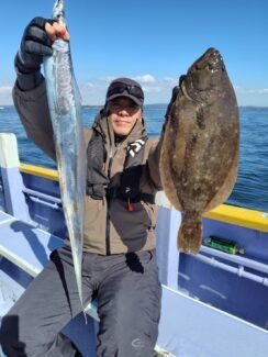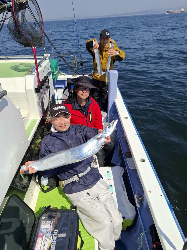 釣果その① 午前シーバス釣りです。 千葉~姉ヶ崎。 ストラクチャー中心に狙いました。各ポイントでポツポツあたり、45cm前後のレギュラーサイズが多かったですが連発する流しもありました。全員が10匹以上の釣果で好調に釣れました。 ----- 釣果その② タチウオ釣りです。 ルアー8〜10匹、 テンビン1名5匹。 湾奥22〜28m。 朝からなかなかアタリ出ず苦戦しました。やっとポツリと釣れましたが続かず散発的な釣れかたでした。 後半には連発する時間帯も有りました 釣れれば90cmからメータークラスが多かったです 竿頭は豊島さま(ルアー)・上村さま(テンビン) ----- 釣果その③ LTアジ釣りです。 11~32㎝、 183~227匹。 前半は1ヶ所目からダブル、トリプルと好調に釣れました。 後半はサイズアップを狙い転々と移動しポツポツ良型見れるも後が続かずでした。 竿頭は宍倉さま。