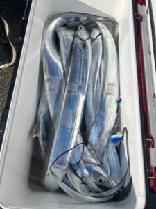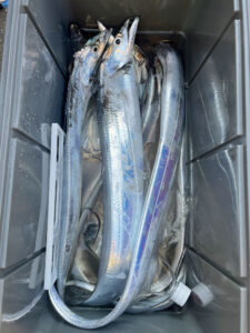 90~110cm 2~11匹 タチウオ(ルアー乗合船)今日からタチウオメインに釣りましたが、出だしからサワラ釣れその後から食いはテクニカルですが、釣れれば良型極太が釣れ5本も釣れれば、十分です。
