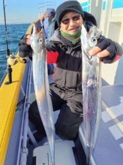 (タチウオ)80~125cm 0~2匹 サワラ 77~86cm 0~3匹 本日もルアー五目船で出れました。 ありがとうございます。 今日は昨日より反応無し、少しでも気配ある所でやってましたが魚よりボートが増えてきて釣れてもタチウオ、そんな時に某サワラ船キャプテン◯次郎さんからお知らせ頂き型見れて一安心でした、間が空きながら当たりありますが水面バラシやらで数は溜まりませんでした、トップの方はサゴシ含めてバラシ無しの5本ゲットです、 バラシ減らすコツあります、スタッフに聞いて下さい、皆さんチャレンジお待ちしています!