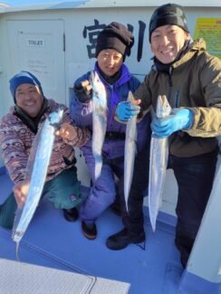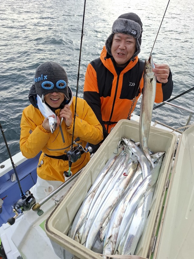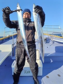 65~110cm 4~21匹 タチウオ船に出ました。 反応も有り、当たりもあるのですが・・・ 今日は針掛りが悪く?バラシが多かったですಠ益ಠ 魚は居ますのでリベンジお待ちしておらります。
