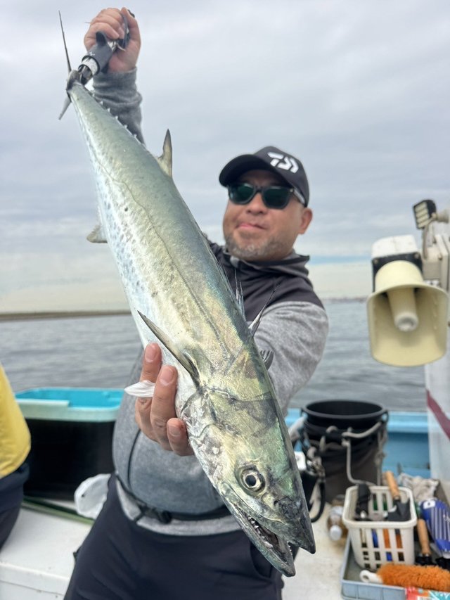 本日はアジとサワラの贅沢仕立て船。 ありがとうございます。 アジからやりました、ポイント着く前に良さそうなベイト反応でルアー投げてもらってサゴシ、タチウオ、状況把握出来たので直ぐアジに、 コチラは開始からバリバリやれて潮変わりまでやって再びサワラ狙いに、何時もの所が皆無らしいので普段見ない所を見に行ったら良さげな反応ありでしたが、少人数だったので有無判断難しくルアー五目船に伝えて違う所まで、するとルアー五目船で型見たと、やはり、で戻ってやって貰ったらサゴシ、サワラ、サゴシと型見れてやはりなと このタイミングで爆風になり早上がりでした、 取り敢えずリレー船成立して良かったです♪ 贅沢リレー、チャレンジお待ちしています♪