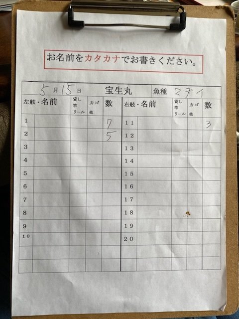 1.20kg 合計1匹 【第二加平丸】 仕立てのマダイ釣りで出船しました。 ご乗船ありがとうございました。