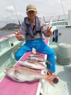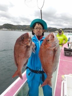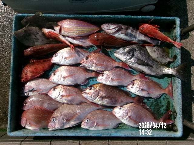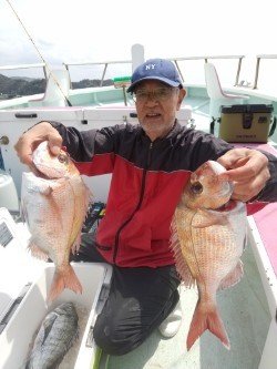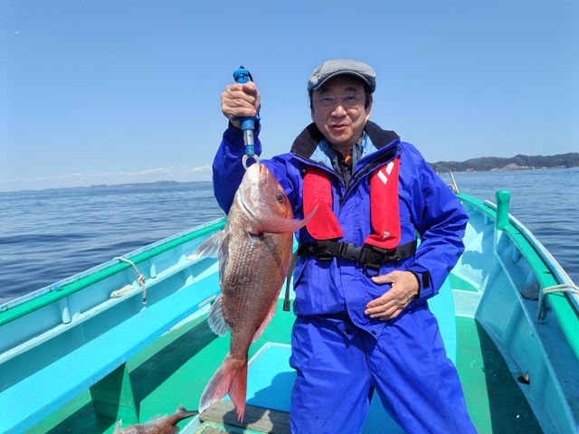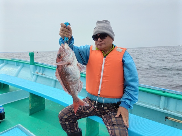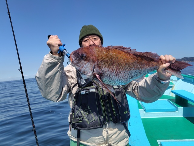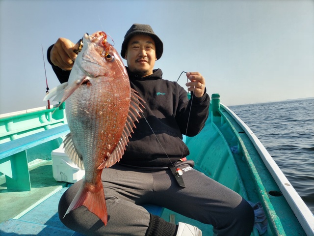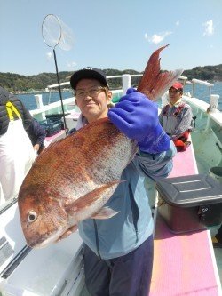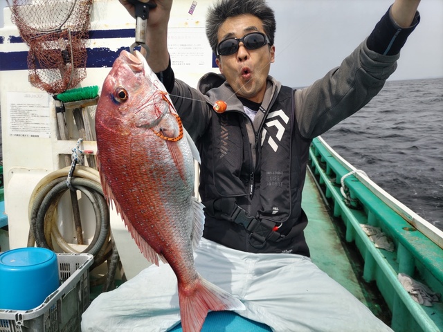 マダイ船。一番から好調な滑り出し! モンスターも出て好調でした。 ハリス切れ、バラシも数枚あり残念・・・8名で23枚!