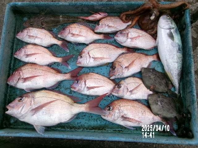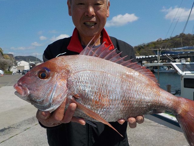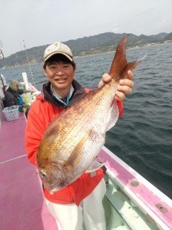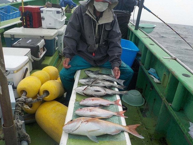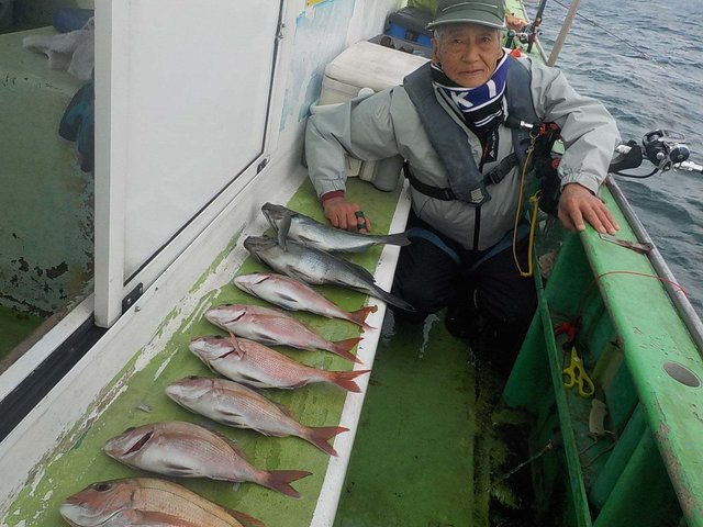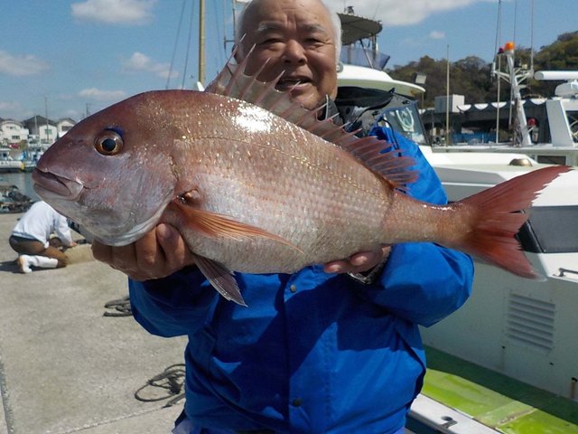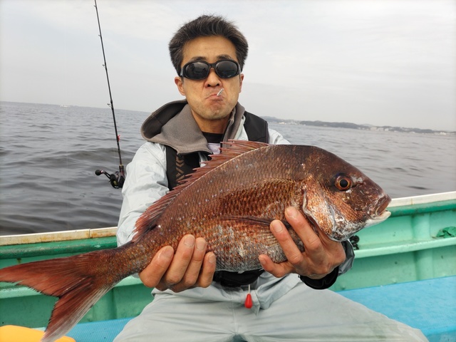 最大2.00kg 合計3匹 本日、本船出船しました。 スタートから南西ですが 釣り場は、大丈夫そうなので 行ってきました。 シャクリマダイ初挑戦の方 1.35キロ良型ゲット。 一つテンヤ2キロゲット。 もう1枚、型物ヒット切られる。 型が出てきたところで 剣崎も14mから17mへ強くなり 本船ぐらいの小型船では限界 10時半頃に沖上がり