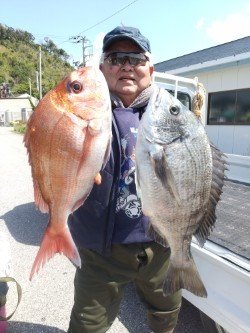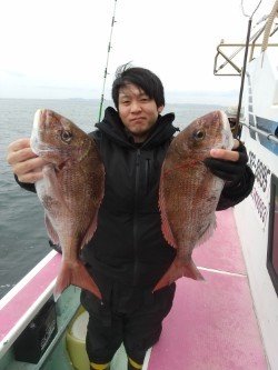 0.50~2.00kg 1~5匹 朝は勝山沖で顔を見てから移動しました。 前半は渋めでしたがコマセが効き始めると当たりが出てきて、中盤以降はダブルヒットや連続ヒットなどもあり、終日当たりが続き皆さん顔を見れて好釣果となれました。