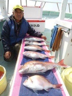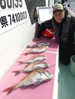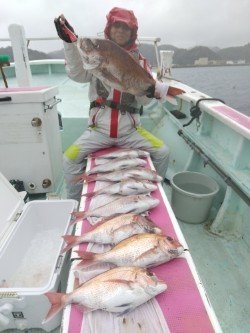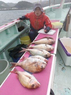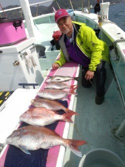 0.60~5.50kg 0~4匹 【午前マダイ船】 朝から中盤にかけて順調に喰いがありました~! 6名様中5名様にマダイが釣れ、5.5kgの大鯛も! 好調な1日となりました。ありがとうございました。 明日14日(金)は午前マダイ船と午後アオリイカ船で出船確定。 空席多数につきご予約お待ちしております。 15日(土)以降のご予約もよろしくお願いします!