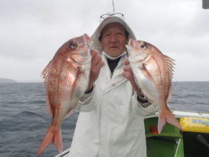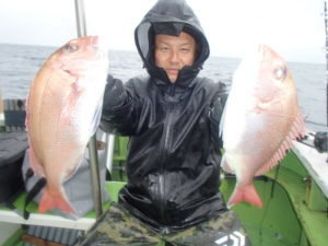0.60~1.80kg 1~3匹 朝の1投目から当たりが出たものの、後が無く移動しました。 反応はあるものの中々口を使ってくれませんでしたが、中盤から当たりが出て少人数でコマセの効きが悪い中皆さん顔を見ることが出来ました。