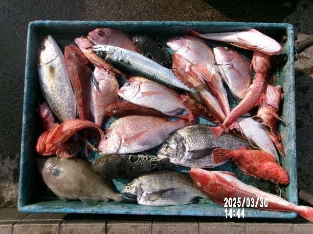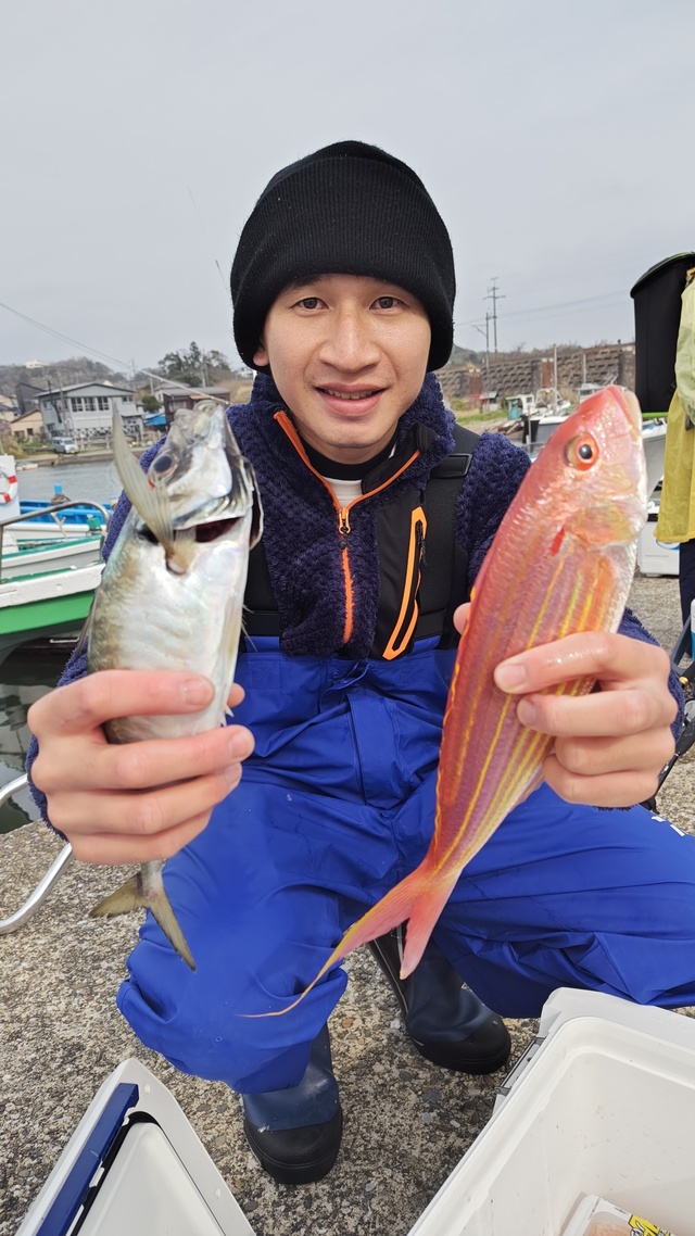 0.80~2.50kg 2~3匹 マアジ 前半は潮が動かず渋かったですが、中盤以降はポツポツ当たりが出て、ダブルヒットなどもあり好調な時間帯もありました。皆さん顔を見れて好釣果となりました。 今後はマダイメインで仕掛けは4号10mでワラサが出る場合がありますので8号6mもご用意ください。