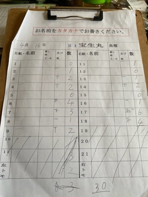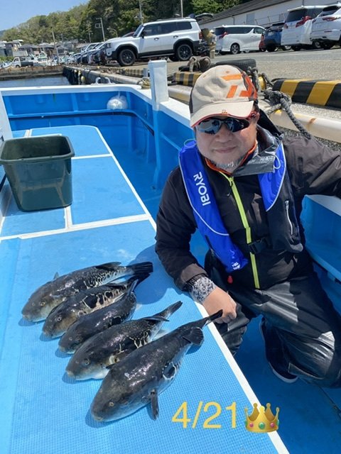 0.80~3.50kg 0~2匹 【午前トラフグ船】 潮がなかなか動かず当たってもポツポツでした。 潮が変わればもう少し楽しめそうなんですけどねぇ! 4月末までトラフグ船とマダイ船にて出船! 席に余裕がありますのでご予約お待ちしております。 5/1よりアジ・イサキのリレー船も出船予定。 こちらもお問い合わせください! 本日もありがとうございました。