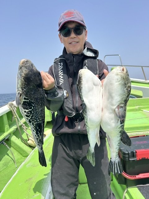 0.90~3.10kg 0~4匹 乗合2隻の高低釣果です 前半は食い良く好調でしたが 後半潮が速くなり2枚潮で釣り辛かったです。 本日ご乗船いただきありがとうございました お疲れさまでした 感謝🙇♀️ トラフグ船、延長戦決定 5月6日まで出船します👍 みなさまのご予約、ご乗船お待ちしております🙇♀️