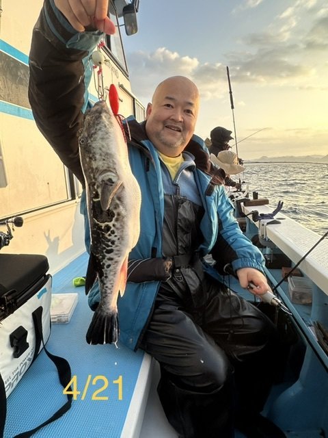 0.80~3.40kg 0~2匹 【午前トラフグ船】 少し難しい釣りになりました。 潮が動いてくれればもう少し楽しめそうなんですけどねぇ! 26、27日はどちらも満席(仕立て船あり)28日から30日はトラフグとマダイで出船、5/1よりマダイとアジ・イサキで出船。 ご予約お待ちしております!