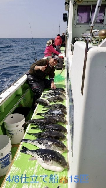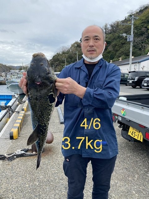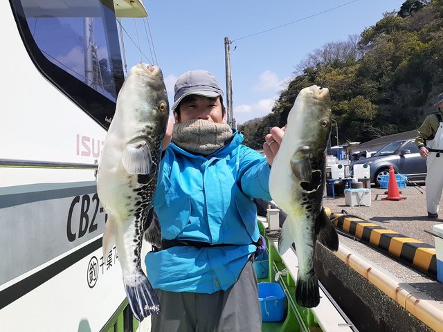 0.70~3.70kg 0~4匹 【午前トラフグ船】 風が心配でしたが何とかもってくれ、ポツポツからのバタバタと釣れました! いろいろ試してアピールしている方が当たりが多いようです。 ぜひ試してみてくださいね! 明日15日(火)は強風予報のため出船中止となります。 4/16日は満席、19日残席少し、20日満席 17~19、21日以降のご予約お待ちしております! 本日もありがとうございました。