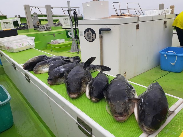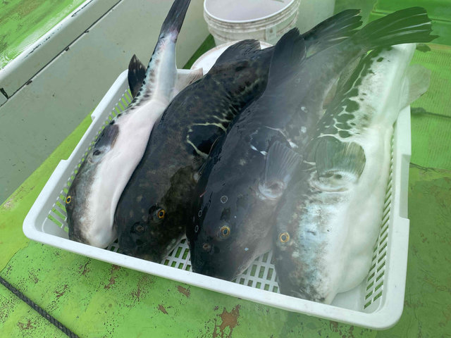 0.80~3.40kg 0~4匹 【午前トラフグ船】 当たりは多かったですが喰いがもう一歩か? バレが多かったです。 なかなか当たらない方はいろいろな誘いを試してみてくださいね! 明日18日、2席空きが出ました! ご予約お待ちしております 【トラフグ船予約状況】 19日~20日と27日は満席となります それ以外の日は空きがありますのでご予約お待ちしております また、キャンセルが出た際はこちらでお知らせします ご予約のお客様でキャンセルや人数変更がある場合はなるべくお早めにご連絡ください