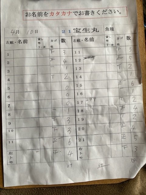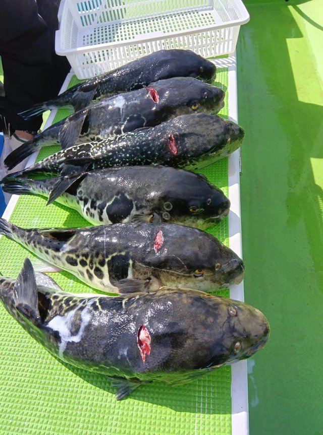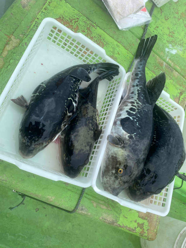 0.80~3.80kg 0~4匹 【午前トラフグ船】 潮が少し早くて大流しできませんでしたが反応は多かったです! PEラインは2号以下でお願いします。 【トラフグ船予約状況】 4/14、15日は満席、16日以降のご予約お待ちしております また、キャンセルが出た際はこちらでお知らせします ご予約のお客様でキャンセルや人数変更がある場合はなるべくお早めにご連絡ください 本日もありがとうございました。