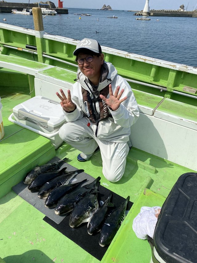 1.20~4.10kg 0~5匹 【午前トラフグ船】 雨の中ありがとうございました! バレもありましたが当たりが多く、パターンさえ掴めば連チャンしてくれました。 当たりのない場合は誘いを変えたり色々試してみてくださいね! 3/31、4/1~3、5、12、13日は満席となっております 4日、6日は残席少し、7日以降の平日は余裕があります 満席日でもキャンセルが出た場合はHPにてお知らせいたします また、キャンセルや人数変更がある場合はなるべくお早めにご連絡ください なお、4月からの出船時間は5時となりますので4時集合でお願いします 本日もありがとうございました!
