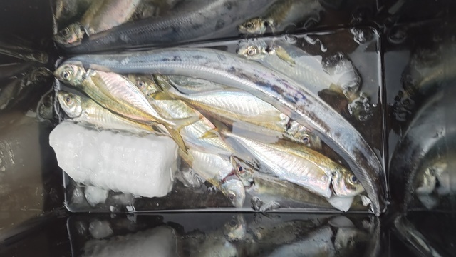 (マアジ)21~28cm 1~5匹 タチウオ 100~110cm 0~4匹 クロダイ 40cm 合計1匹 アジ・タチリレー乗合で凪良くも、タチもアジ共に渋々で厳しかった。