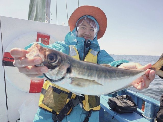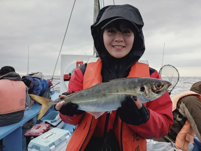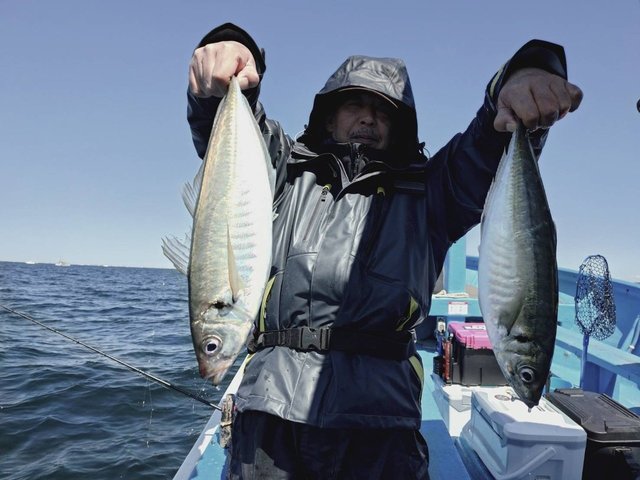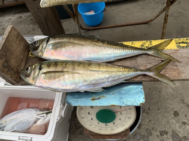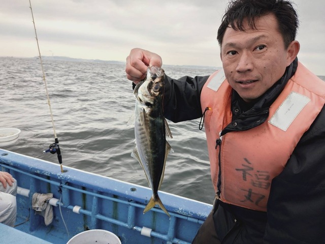 (マアジ)35~46cm 3~10匹 アジ出船!激渋でした。初心者の方々にも頑張って釣って頂きました。ゲストは黒ダイ2匹、サバ少々でした。寒い中ご乗船ありがとうございましたm(__)m