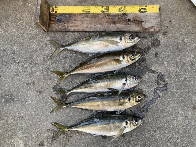 (マアジ)24~33cm 6~18匹 アカアマダイ 30~40cm 0~1匹 ムシガレイ 26~40cm 1~6匹 イトヨリ 24~43cm 0~3匹 今日は、アタリ少なく渋く苦戦で各所拾い釣りでアマダイも顔見れました。後半アジも反応バリバリだけど 喰い単発でその後少し活性上向き おかず十分でした。