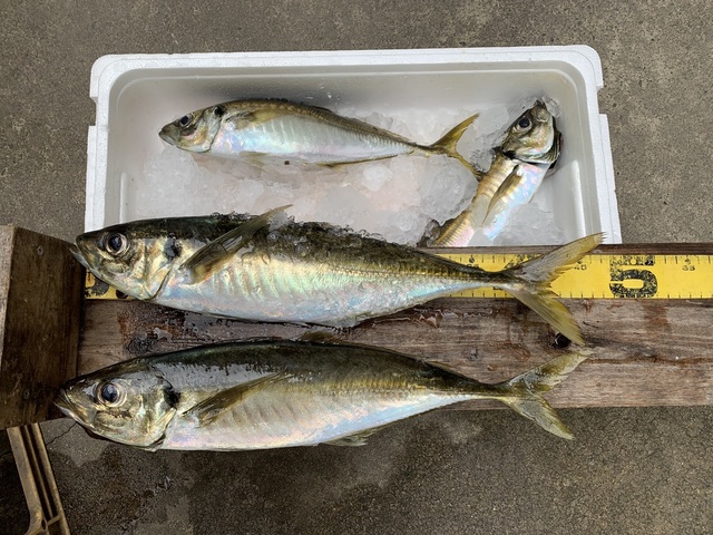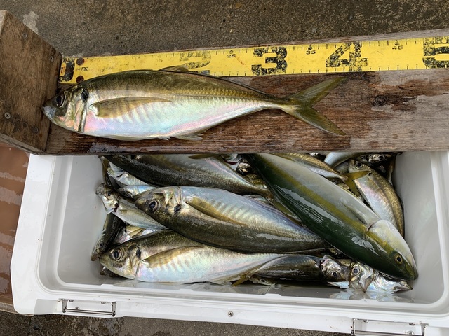 (マアジ)40~47cm 2~5匹 アジ出船!本日も15㎝~25㎝まだまだ釣り放題d(^_^o)ゲストはイナダ1匹でした。