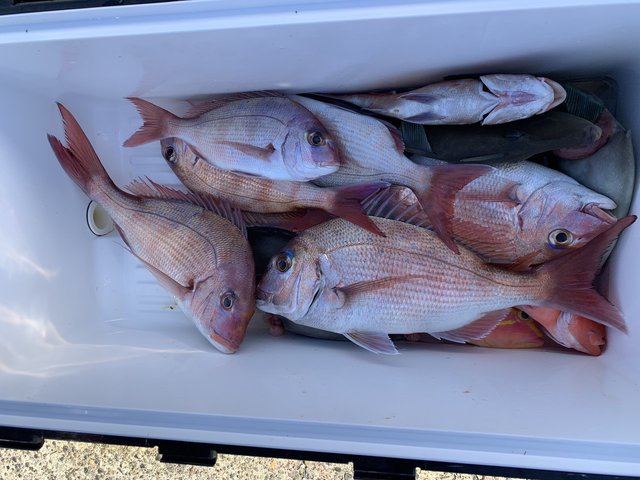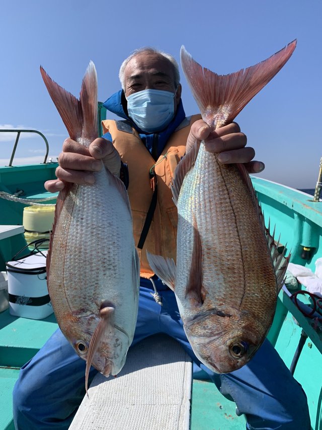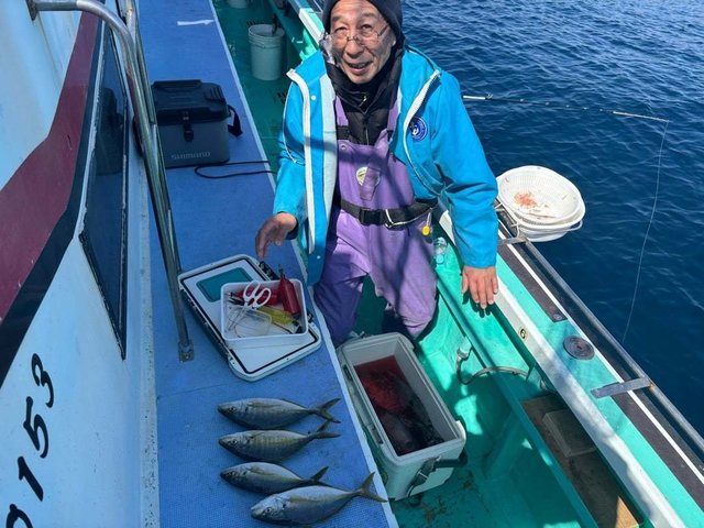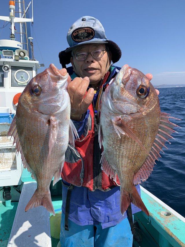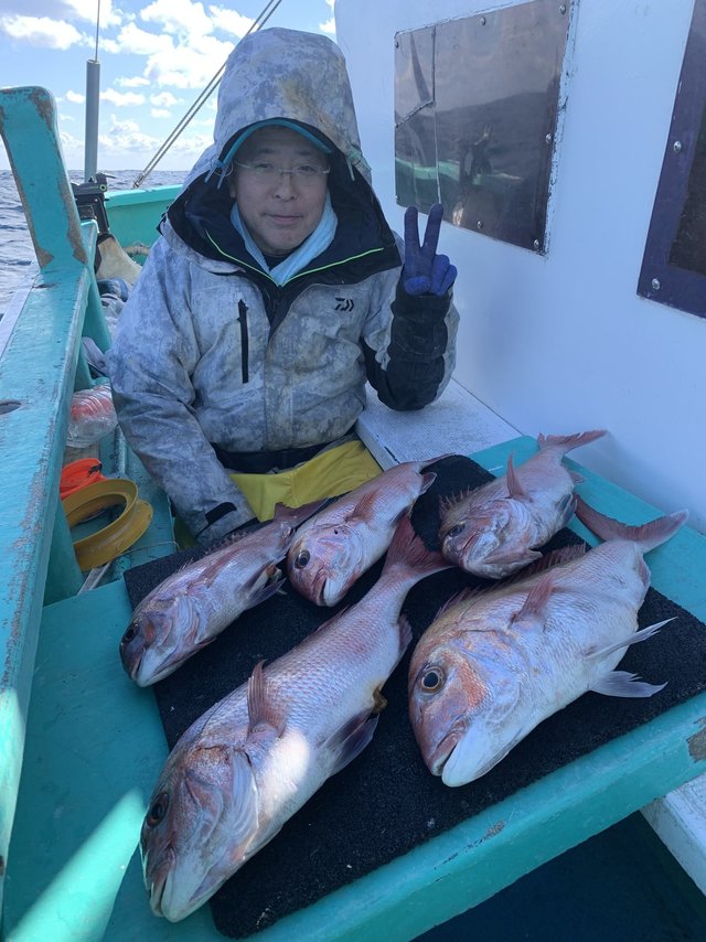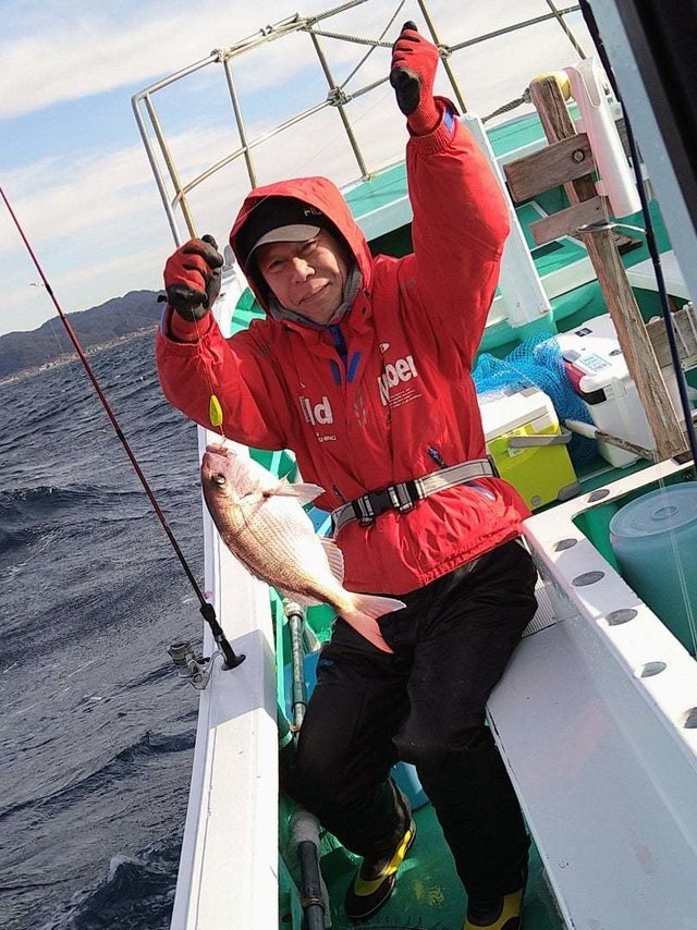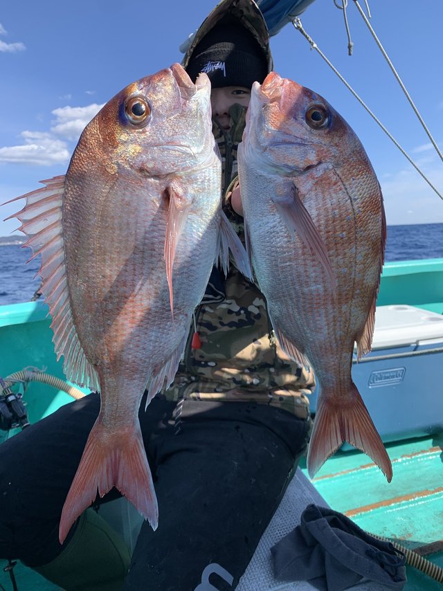 【釣行時間】5:45〜11:15【潮汐】中潮(月齢17)満潮6:46干潮11:44【気温】14〜17℃【水温】21.8℃【水色】やや澄み/暗→やや澄み/紺→やや澄み/青緑【風】北東強→北強【波】東中【潮流】無し→真潮0.4〜0.8kt→込み逆潮0.4〜0.6kt→逆潮0.3〜1.1kt【乗船人数】4名。 本日【アジ泳がせ/コマセマダイ五目釣り】…のつもりで、餌アジ釣りを行いましたが、アジの釣果はいまいちでした…。 でも、ムツやイワシが釣れる中、少々は釣れます。というわけで、お得意のコマセマダイです。本日も凄腕揃い。アジが無くて、ムツ泳がせでショゴもGET〜。本日も満足釣果〜。