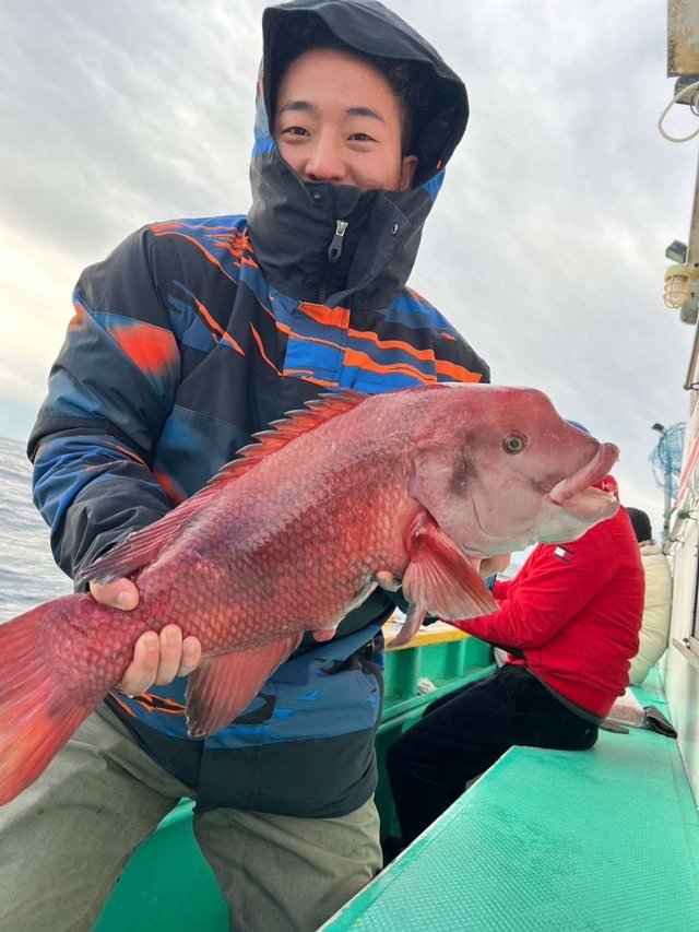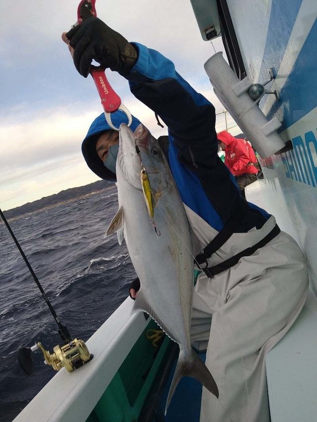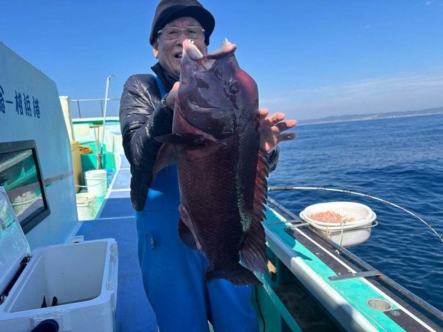 0.70kg 0~1匹 カンパチ 1.10~5.00kg 0~2匹 カツオ 1.70kg 0~1匹 アオハタ 1.20kg 0~1匹 ウッカリカサゴ マトウダイ 【釣行時間】5:45〜11:15【潮汐】若潮(月齢9)干潮6:12満潮13:27【気温】17〜20℃【水温】22.7〜23.4℃【水色】澄み/暗→澄み/紺→澄み/暗【風】北東強→北強→北西強【波】北東大→東大→北西大→東大→北西大→南東大【潮流】出し逆潮0.1〜0.9kt→無し【乗船人数】2名。 本日も【ジギング五目釣り】〜。 アオハタは鉄板。一緒にマダイも釣れてた〜。 おー!!なんかこの引きはスゴそーだよ~カンパチ5.0kg、久々の大物〜。最後、納竿の際にカツオが掛かりました